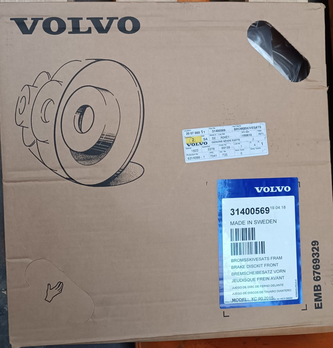 Volvo Originale Disco di Freno Anteriore 31400569